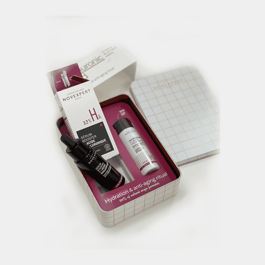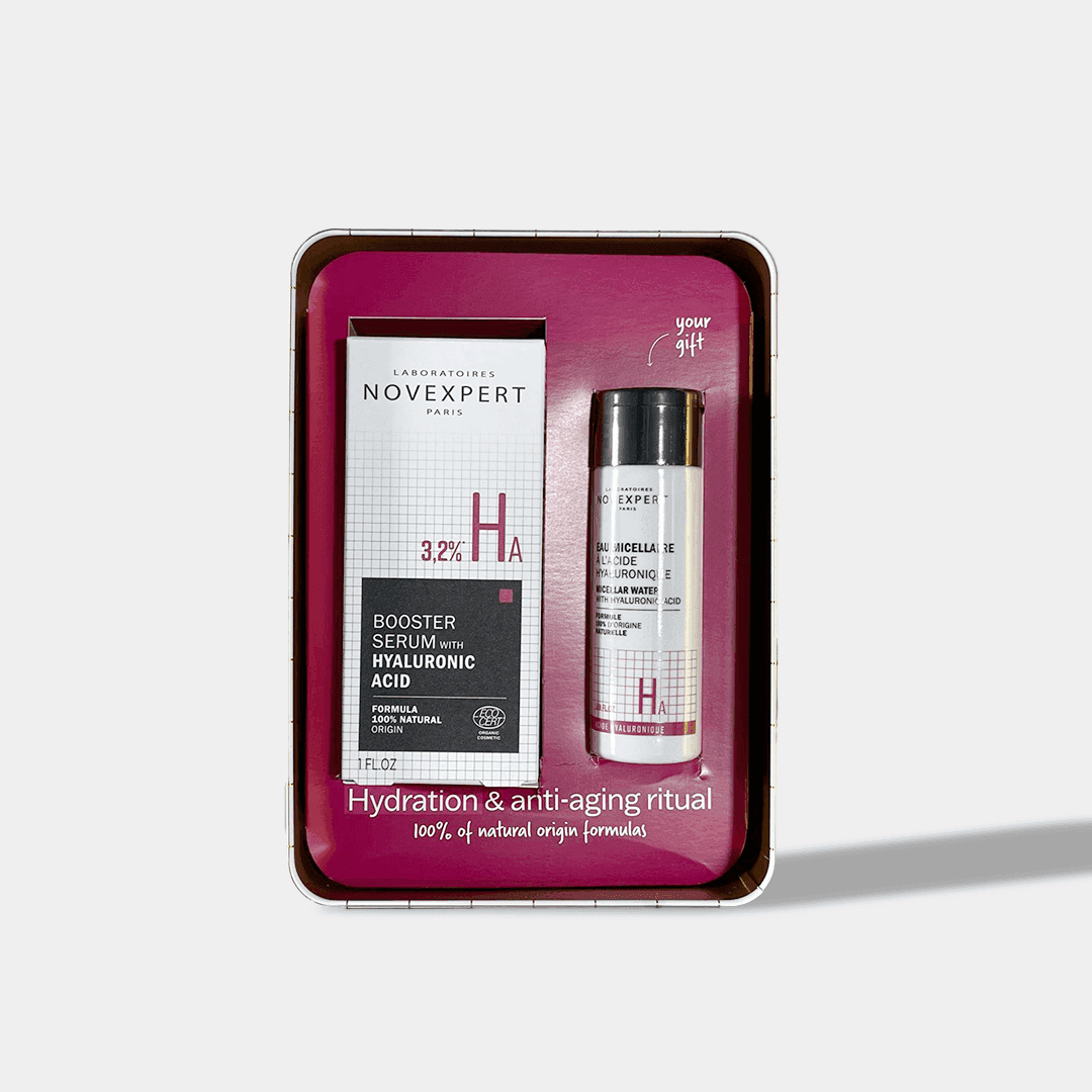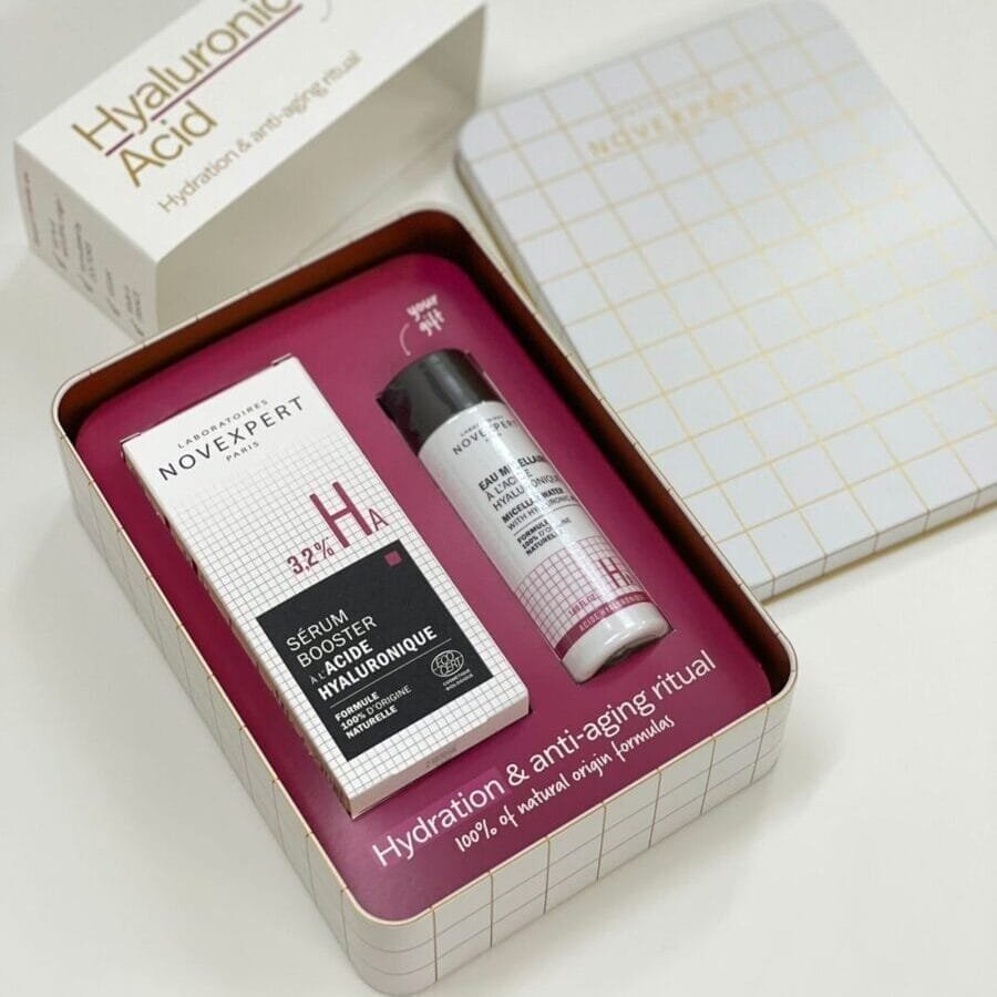 تحتوي مجموعة سيروم حمض الهيالورونيك المكثف مع غسول ماء الميسيلار علي: